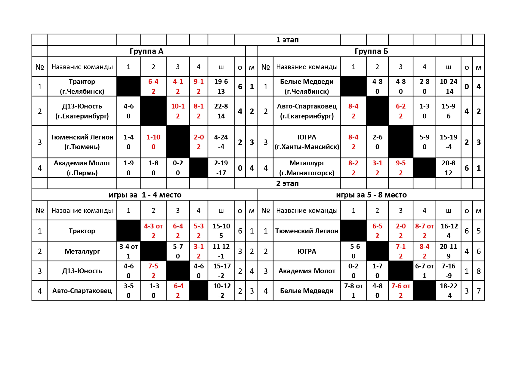 Результаты турнира: